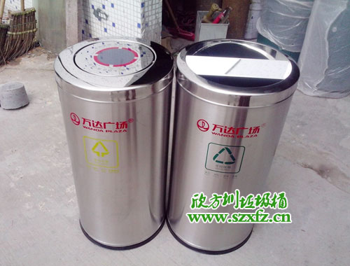 此次采購的幾百個C18港式帶蓋果皮箱,主要用于廣場的各個角落。為了迎合佛山南海萬達廣場的開業,必須在開業前把訂購的不銹鋼垃圾桶,全部按照指定日期交貨。不銹鋼垃圾桶規格為:Φ380*730mm。不銹鋼垃圾桶規格為,圓的直徑380,高730mm。不銹鋼垃圾桶表面砂鋼色澤,頂部投遞口有一塊圓形狀蓋著,方便投放垃圾物品,用手輕輕一推打開一個小口,即可把垃圾廢物統統的兜進去。不銹鋼垃圾桶圓形蓋投遞口,有用紅顏色標注,紅顏色圈內有灰色區域。配置鍍鋅板內桶,便于垃圾清倒;不銹鋼垃圾桶采用優質的304#優質不銹鋼材料模壓成型,經過工廠專業的技術員制作,數控折彎,滾圓,激光,焊機等多種工序加工而成。金屬亮澤 ,高雅美觀。