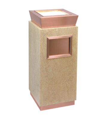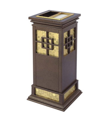 • 產(chǎn)品材質(zhì):采用天然的大理石與優(yōu)質(zhì)冷軋鋼板或不銹鋼鋼板制作而成,四面大理石用鋼板螺絲固定于桶體,有內(nèi)桶,方便提倒垃圾,桶頭煙灰盅可放白石子可清洗,鋼板經(jīng)折彎沖壓一次性成型。產(chǎn)品一律用室外粉靜電噴塑,經(jīng)過180°的高溫,延長垃圾桶使用壽命,顏色持久不變亮麗如新。