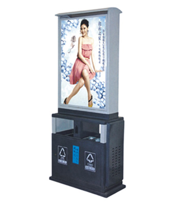 • 產品材質:廣告垃圾桶產品造型經典時尚,整體結構牢靠,箱體箱底連體式設計,底座可固定地上,抗打擊,抗風力。廣告垃圾桶燈箱具有、投入成本低,直接受眾效果好。 相比較其他形式的廣告而言垃圾桶廣告的成本相當低而且是直接面向廣告受眾,貼進消費者,形成高覆蓋網絡規模廣告效應;
